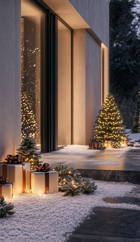 - Đèn chiếu laser hoặc projection lên mặt tiền nhà – tạo hiệu ứng như tuyết rơi hoặc sao sáng.