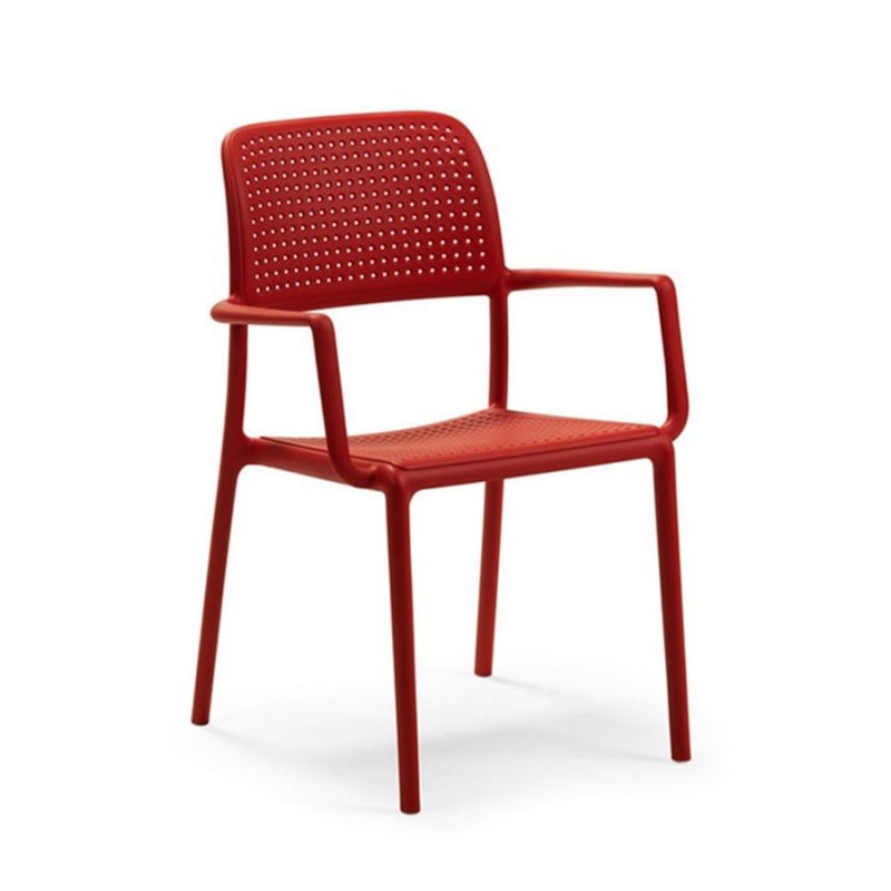Mẫu thiết kế ghế nhựa đỏ có tay vịn cao cấp từ Nardi Outdoor. Bora Chair WC054 mang dáng vẻ khỏe khoắn và năng động, phù hợp cho nhiều không gian bài trí.