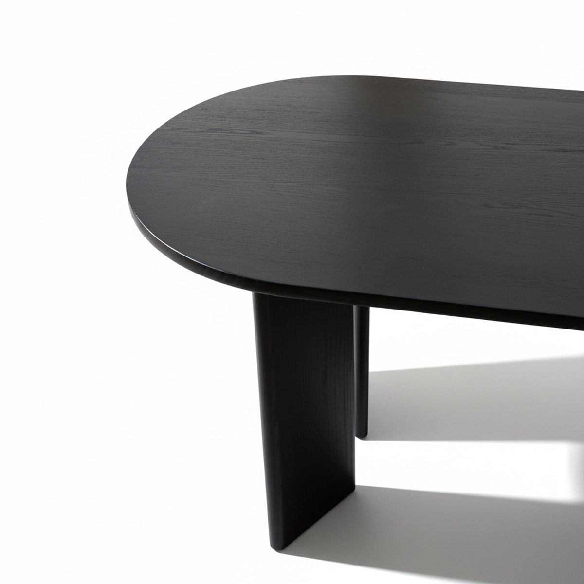 Mặt bàn bo tròn dạng oval mềm mại, giúp tổng thể nhẹ thị giác, thân thiện và an toàn trong không gian sinh hoạt gia đình.