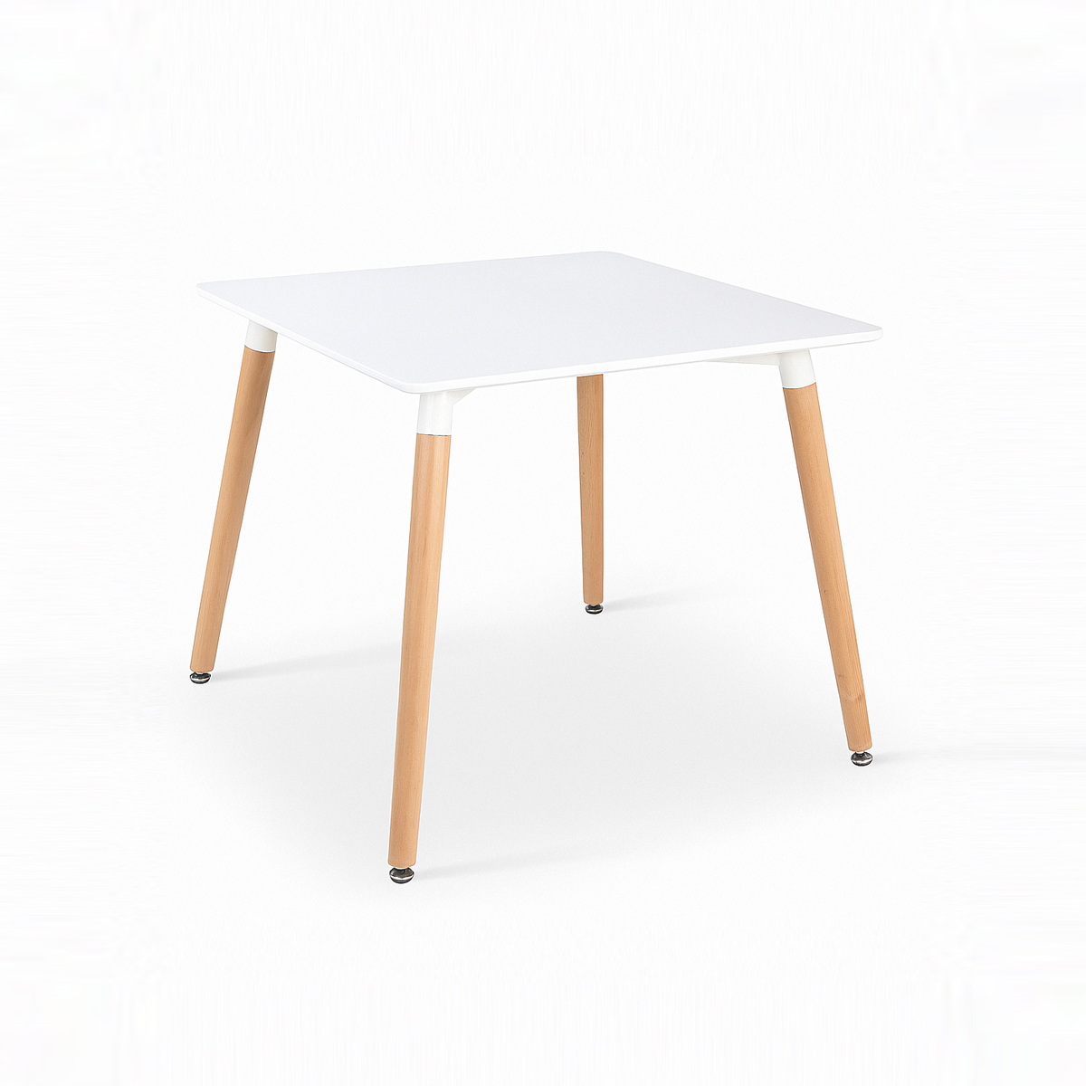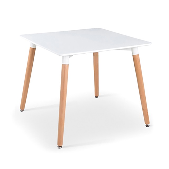 Bàn Eames vuông 80 hiện đại WT023. Mặt bàn được làm từ chất liệu MDF sơn, chân bàn được làm từ gỗ sồi tự nhiên. Đây là mẫu bàn vuông bốn ghế ngồi phù hợp làm bàn ăn cho không gian nhỏ như nội thất căn hộ chung cư, nhà phố nhỏ…Với thiết kế nhỏ gọn và trọng lượng nhẹ, bàn còn được sữ dụng nhiều trong các không gian quán cafe, nhà hàng..để dễ dàng di chuyển và sắp đặt.