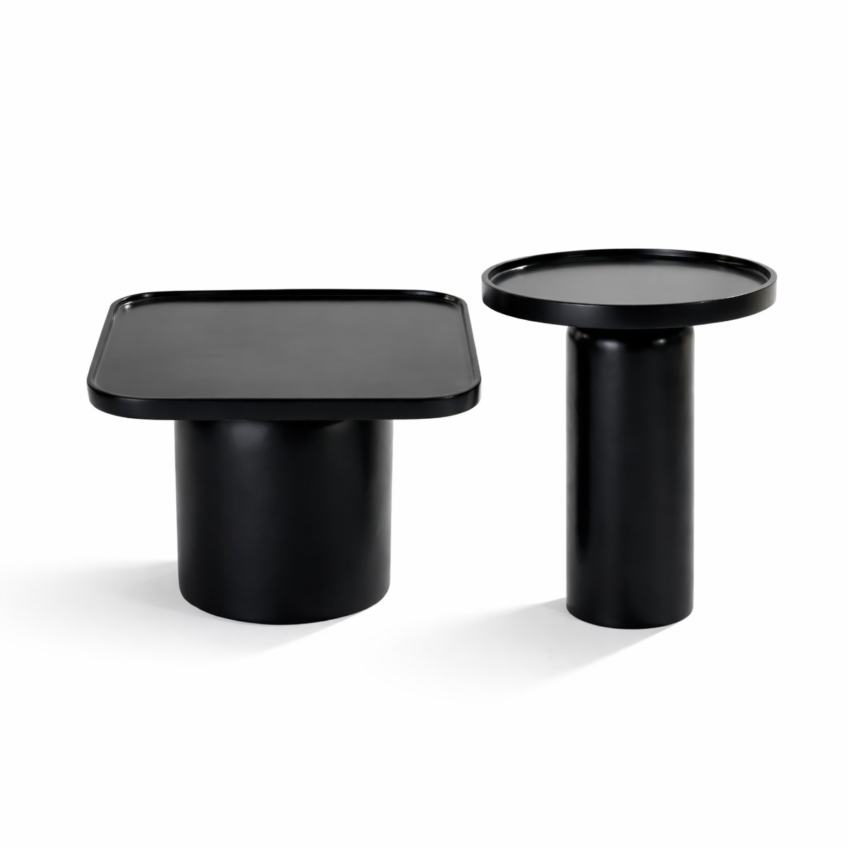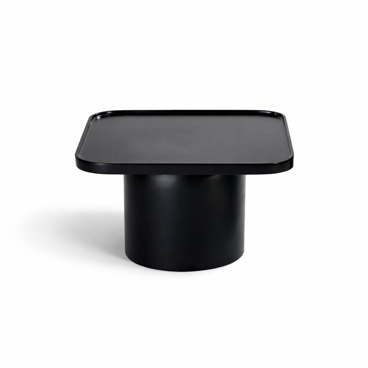 Mặt bàn vuông bo tròn góc, dạng khay (tray top) tạo cảm giác mềm mại, thân thiện nhưng vẫn giữ được tính kỷ luật của hình học vuông.