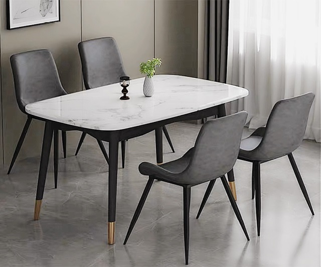+ Bàn mặt đá nhân tạo, chân bàn bằng sắt sơn tĩnh điện bọc thép xi vàng PVD