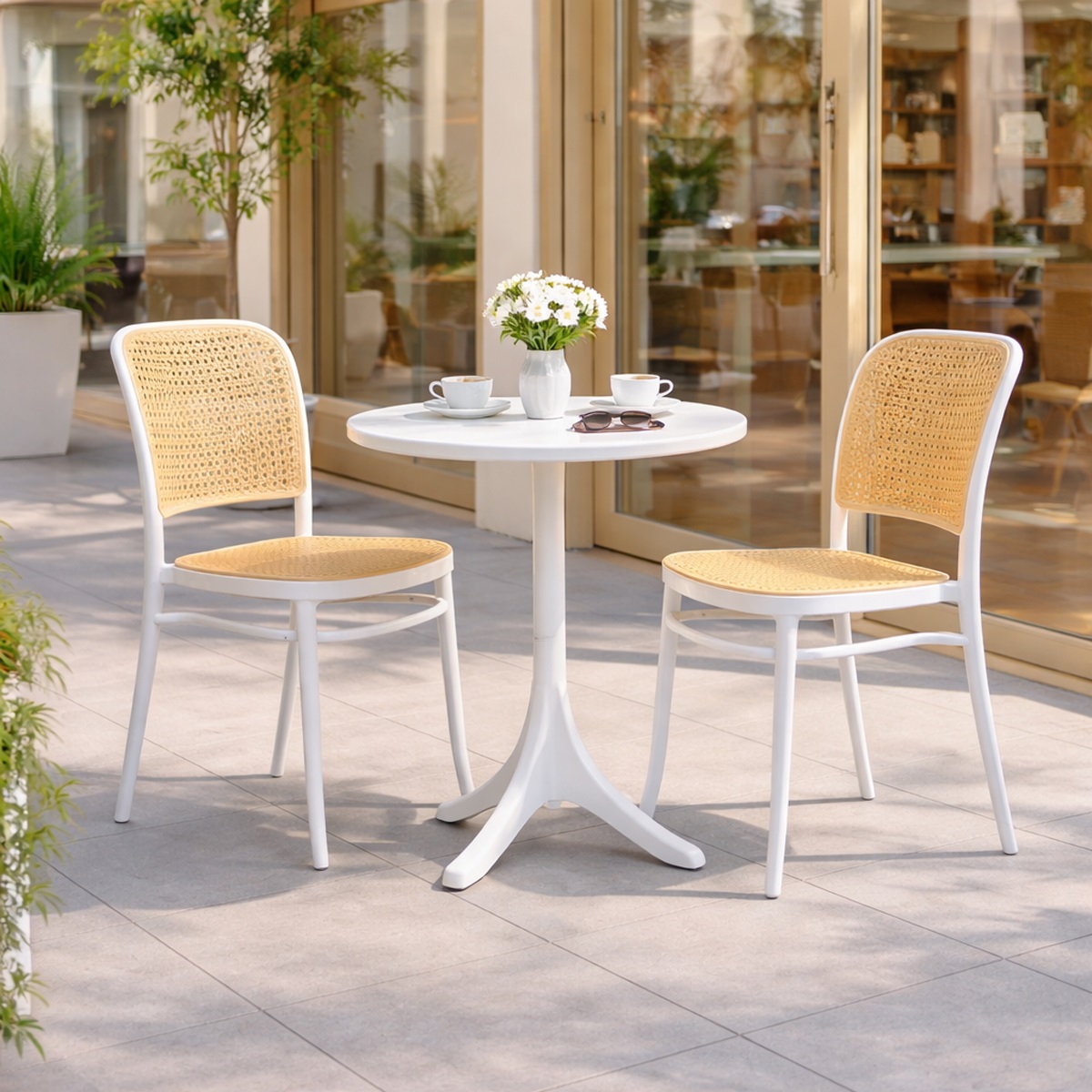 Bộ Bàn Ghế Cafe Ngoài Trời ST-CB097 – Thiết kế nhẹ nhàng và tinh tế, tạo cảm giác thư giãn và thoải mái cho không gian sân vườn. Ghế và bàn được làm bằng chất liệu nhựa nguyên sinh PP, với khả năng chống chịu nắng mưa và môi trường biển tốt, độ bền màu cao, dễ dàng vệ sinh bảo quản. Bộ sản phẩm gồm có: