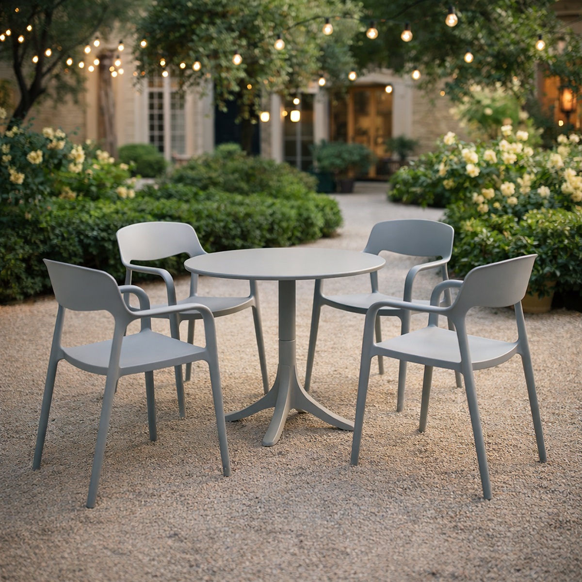 Bộ Bàn Ghế Sân Vườn Ngoài Trời ST-CB087 – Thiết kế nhẹ nhàng và tinh tế, tạo cảm giác thư giãn và thoải mái cho không gian sân vườn. Ghế và bàn được làm bằng chất liệu nhựa nguyên sinh PP, với khả năng chống chịu nắng mưa và môi trường biển tốt, độ bền màu cao, dễ dàng vệ sinh bảo quản và có khả năng xếp chồng. Bộ sản phẩm gồm có: