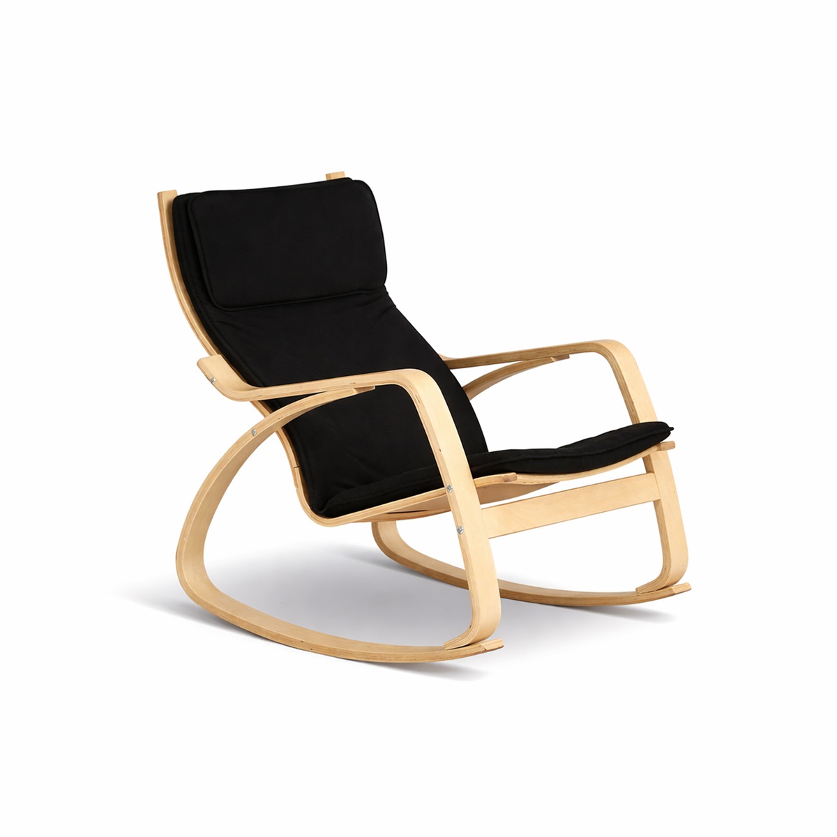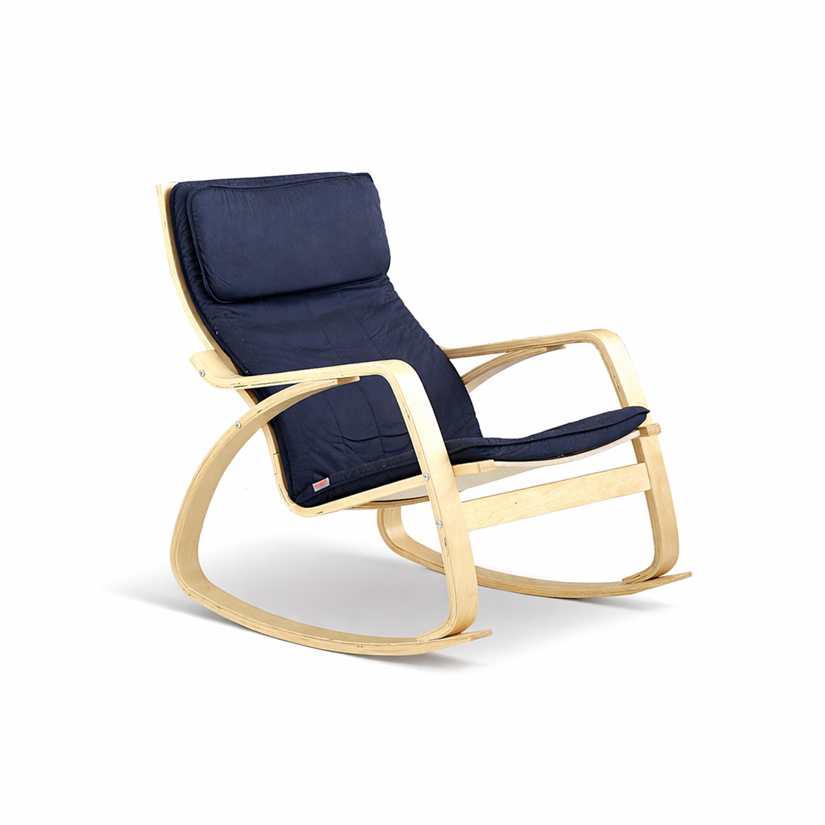 + Mẫu ghế bập bênh Poang sở hữu thiết kế tối giản, thanh thoát với khung gỗ plywood uốn cong mềm mại, tạo cảm giác nhẹ nhàng và hiện đại.