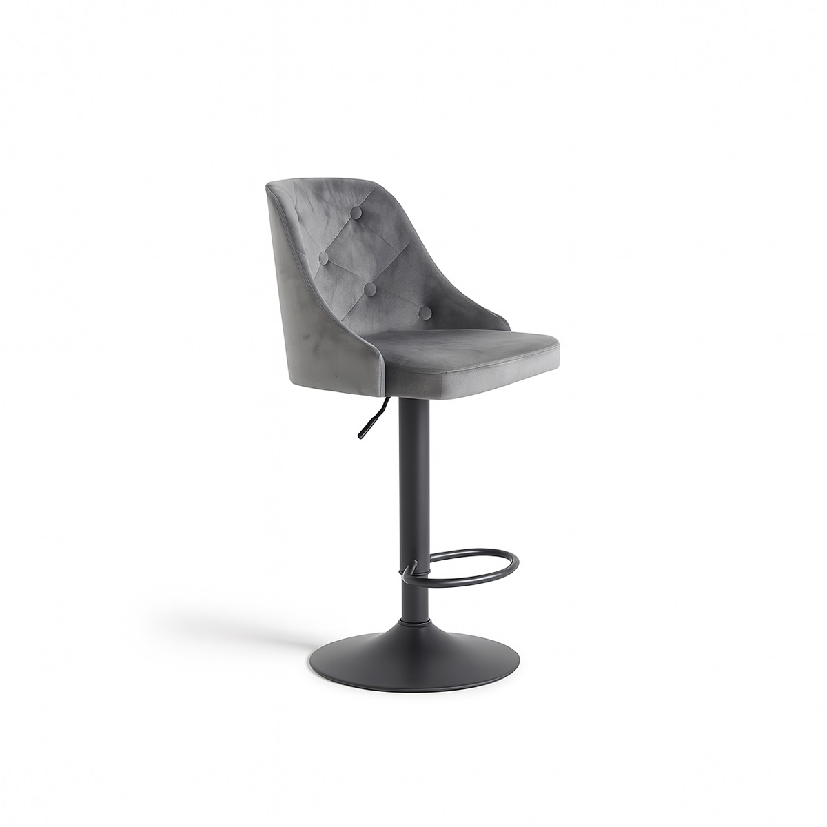 Mặt ghế bar được làm từ nệm mút bọc nhung nỉ cao cấp, chân ghế được làm hoàn toàn bằng sắt sơn tĩnh điện mờ. Bánh mâm ghế với đường kính lên đến 40cm nên cực kỳ chắc chắn và vững trãi. Ghế bar có thể xoay 360 độ một cách dễ dàng bằng hệ thống trục xoay. Bạn cũng có thể tăng giảm chiều cao ghế bằng cần gạt tích hợp giữa phần chân ghế và mặt ghế. Phần chân ghế còn được thiết kế thêm gác chân giúp bạn thuận tiện hơn khi lên và xuống ghế.