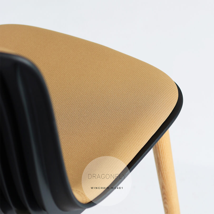Về cơ bản thì mẫu ghế Dragonfly được thiết kế khá đơn giản với phần mặt ghế và lưng tựa được trang trí bởi họa tiết sọc đứng tinh tế lấy ý tưởng từ loài côn trùng là con chuồn chuồn. Kết hợp cùng 4 chân ghế gỗ mảnh mai giúp tổng thể thiết kế thêm phần thanh lịch, phù hợp với không gian văn phòng.