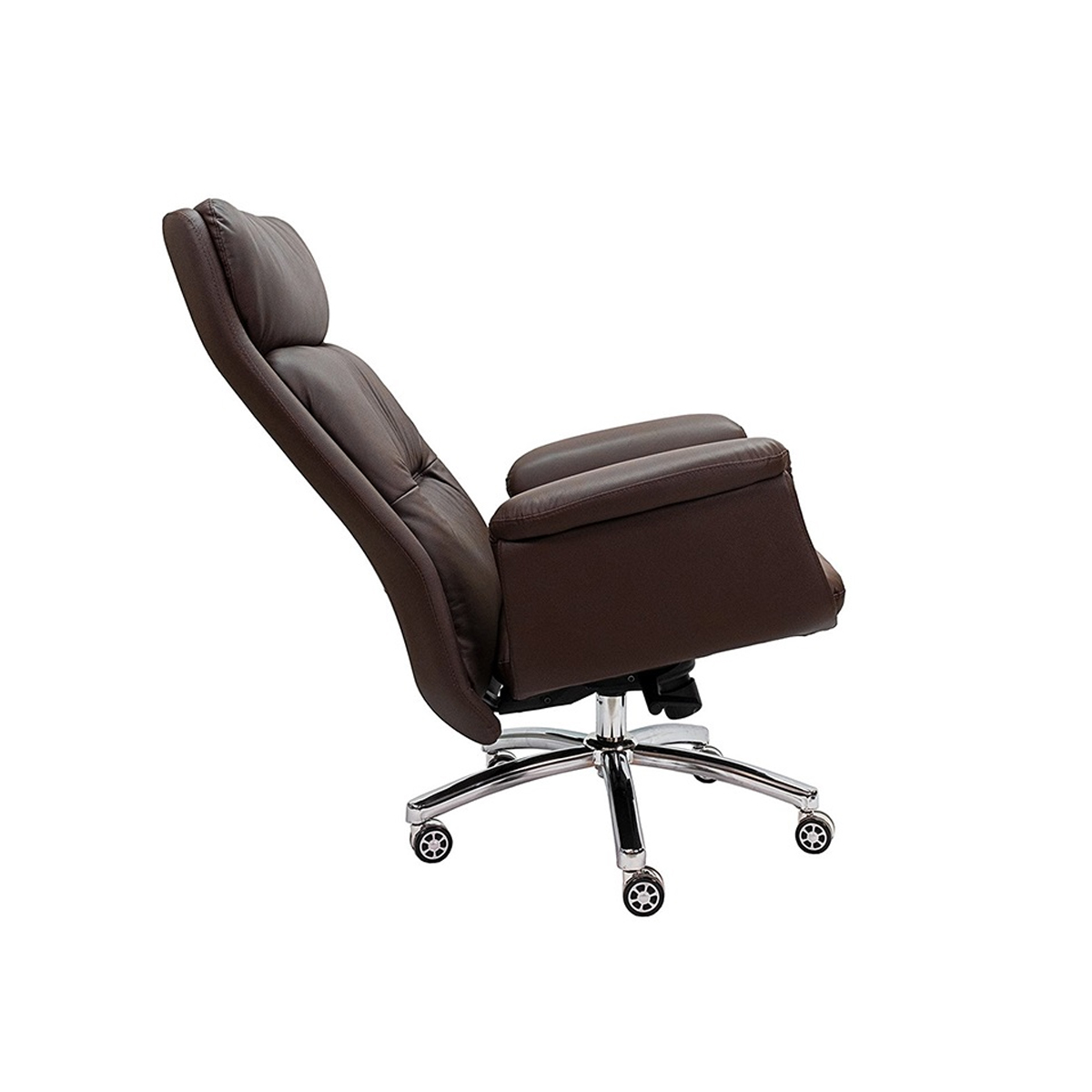 Nhìn vào hình ảnh minh họa bên trên, bạn có thể hình dung thêm về độ ngả lưng của mẫu ghế văn phòng giám đốc này. Chỉ cần một thao tác nhỏ trên hệ thống cần gạt dưới mặt ghế là bạn có thể cho ghế ngả lưng ra sau. Đây là một chức năng mới trong các dòng ghế văn phòng hiện đại, giúp người dùng có thể thư giản, nghỉ ngơi trực tiếp trên ghế.