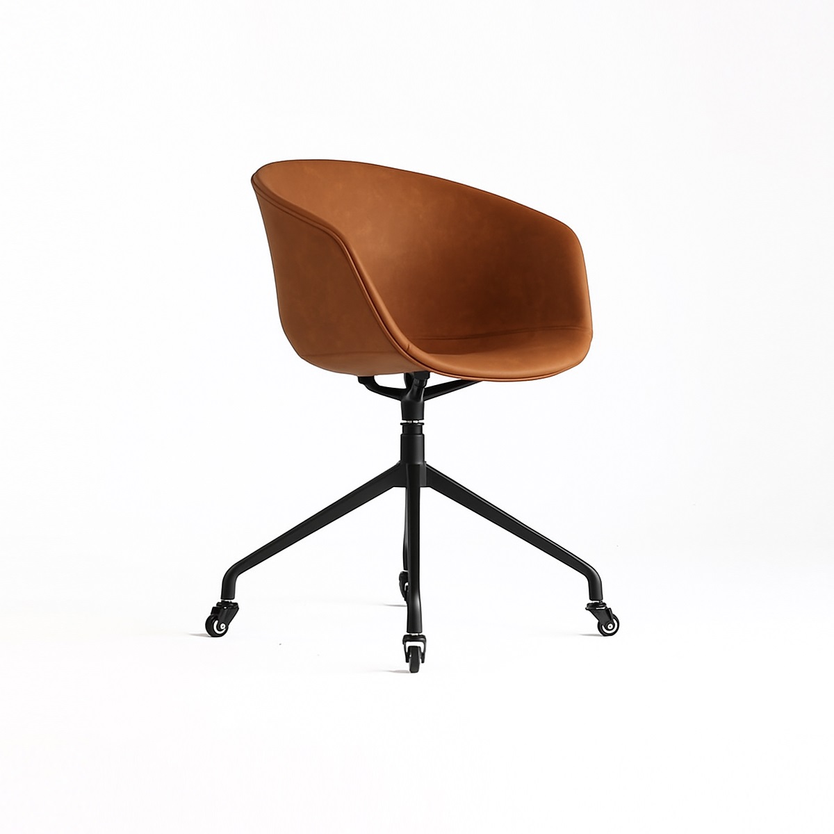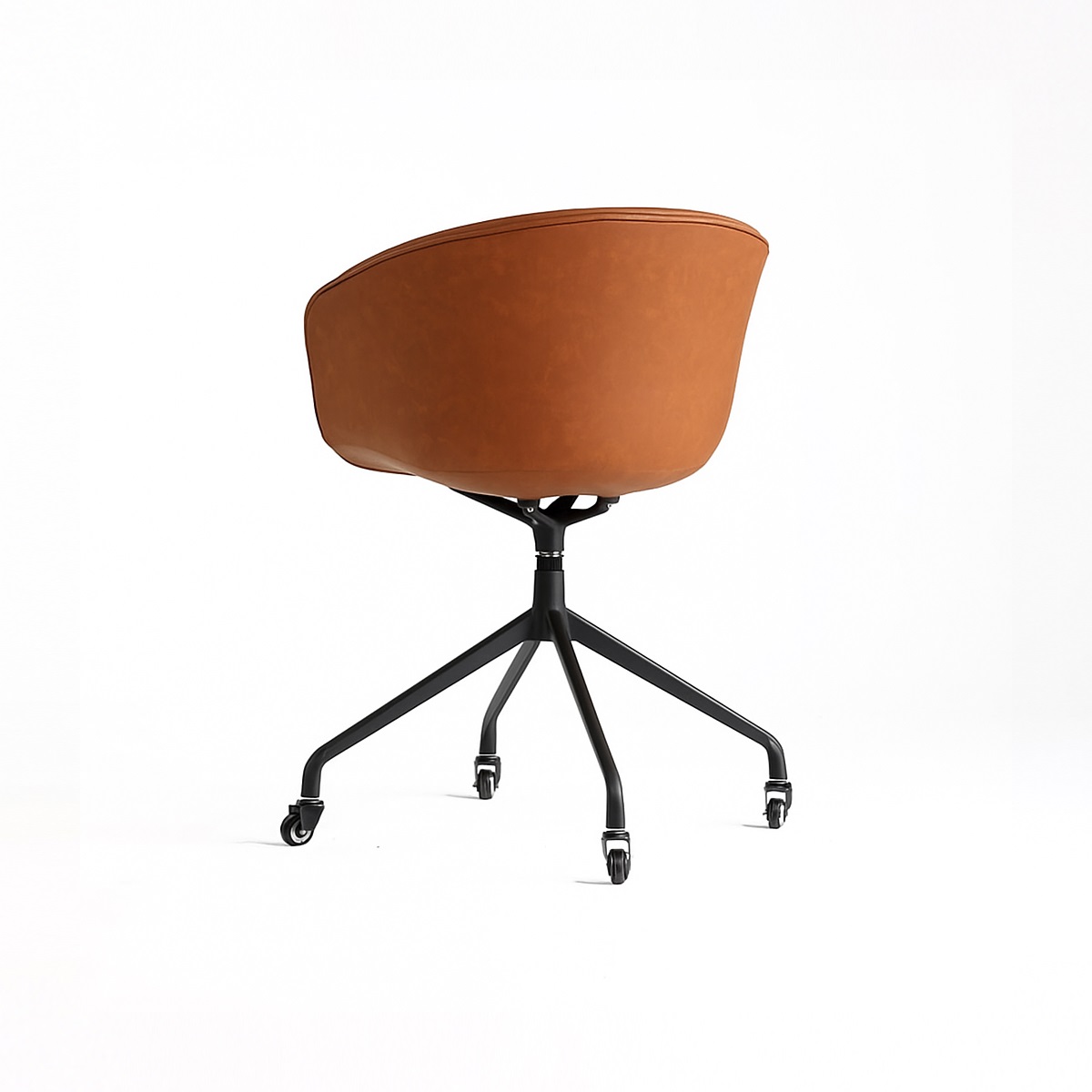 Ghế văn phòng bọc da chân xoay có chân làm từ sắt hợp kim nhôm sơn epoxy chắc chắn với tính năng sáng bóng, độ bền cao và chống ăn mòn. Bởi thế sản phẩm sở hữu độ vững chắc giúp người ngồi có cảm giác an toàn khi sử dụng. Tích hợp thêm bánh xe nhựa đúc chắc chắn có thể di chuyển xoay tròn 360 độ linh hoạt.