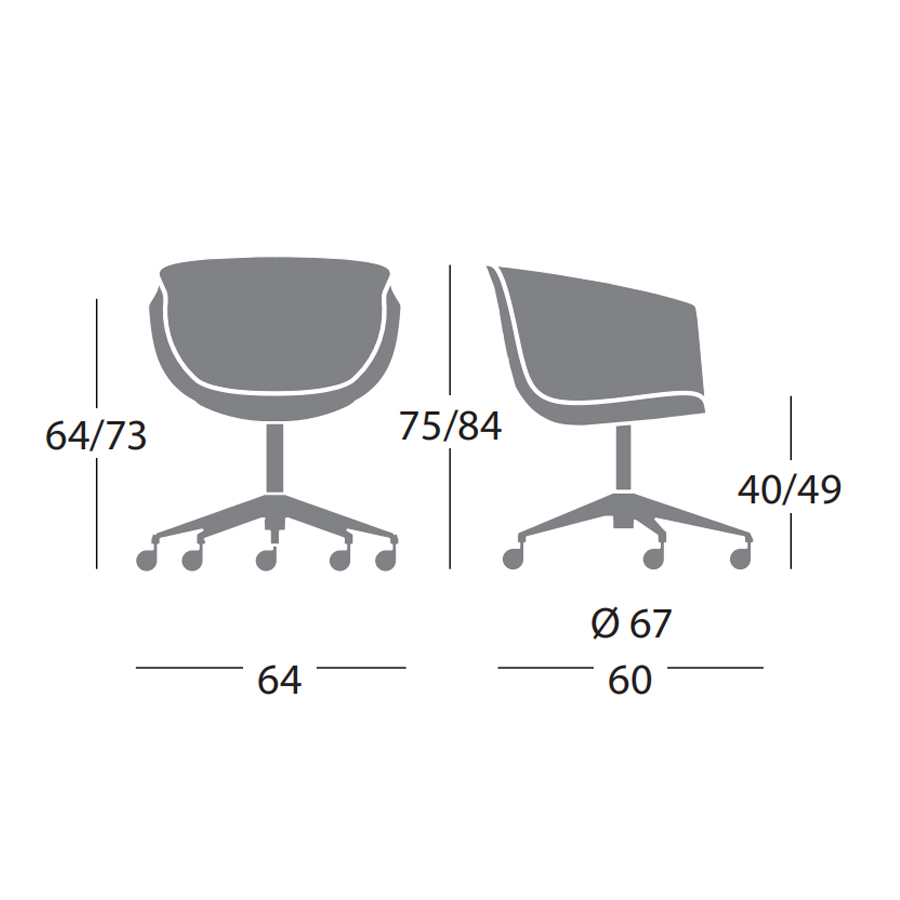 - Kích thước tổng thể: Ngang W= 64cm x Sâu D= 60cm x Cao H= 75-84cm
