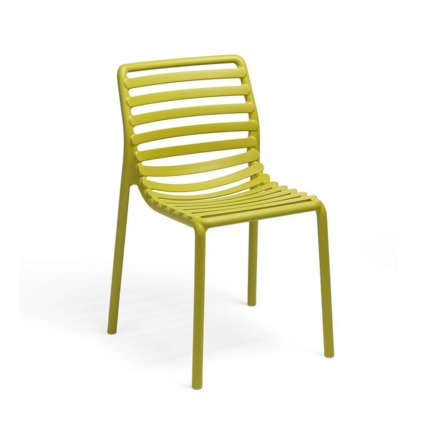 Thiết kế thanh mảnh mang lại vẻ hiện đại cho Doga Bistrot, một chiếc ghế ngoài trời không có tay vịn được làm bằng nhựa sợi thủy tinh. Nó rất tiện dụng để di chuyển, có thể xếp chồng lên nhau, dễ dàng vệ sinh và hoàn toàn có thể tái chế.