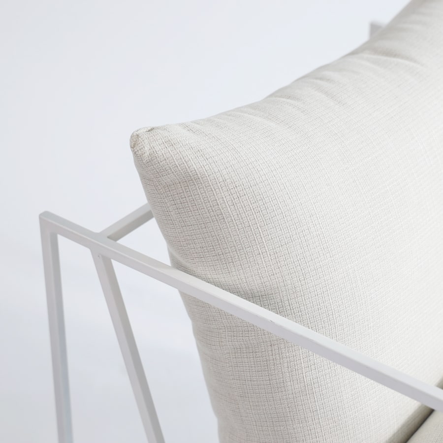 Pie Armchair được cấu tạo từ sự kết hợp giữa khung sắt sơn tĩnh điện và nệm bọc vải bố cao cấp. Từng thanh sắt được ghép nối với nhau thật tỉ mỉ, vuông vắn và cố định. Toàn bộ ghế mang dáng vẻ như một chiếc hình hộp vuông đẹp mắt. Tay vịn cố định trở thành điểm tựa thư thái cho người dùng. Mặt ngồi ghế được thiết kế càng về sau càng thấp xuống. Giúp bạn dễ dàng ngả người ra sau để tựa vào lưng ghế.