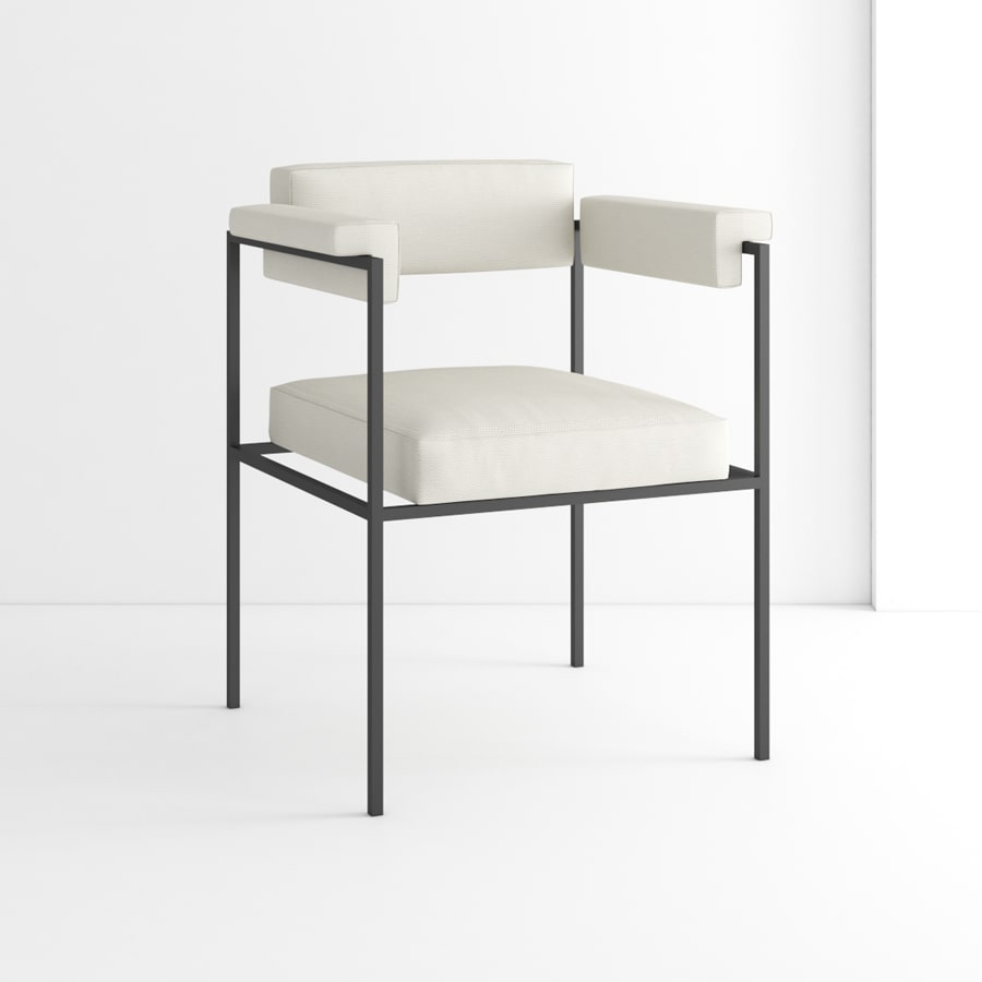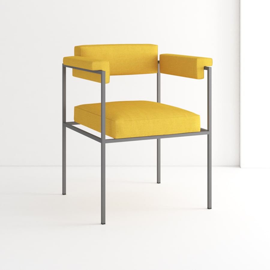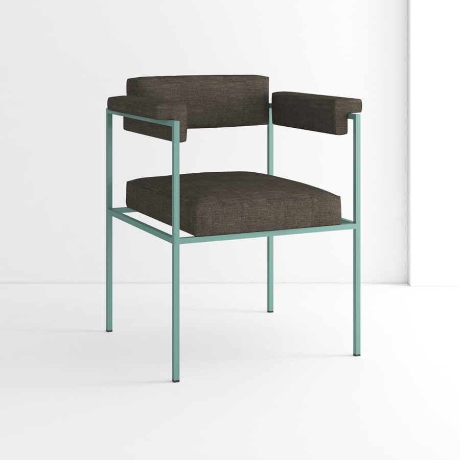 Ghế mang hình dáng một chiếc armchair độc đáo và mới lạ. Các lớp đệm bọc xung quanh khung sắt vừa là điểm nhấn thú vị vừa mang đến sự êm ái khi tựa tay.