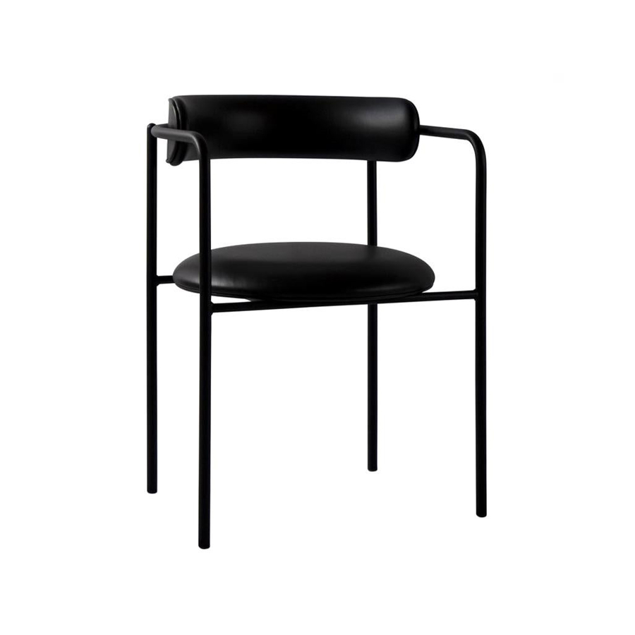 Khung ghế chắc chắn với chất liệu sắt sơn tĩnh điện, kết hợp mặt nệm và lưng tựa bọc nệm hoặc da công nghiệp với màu sắc tùy chọn.