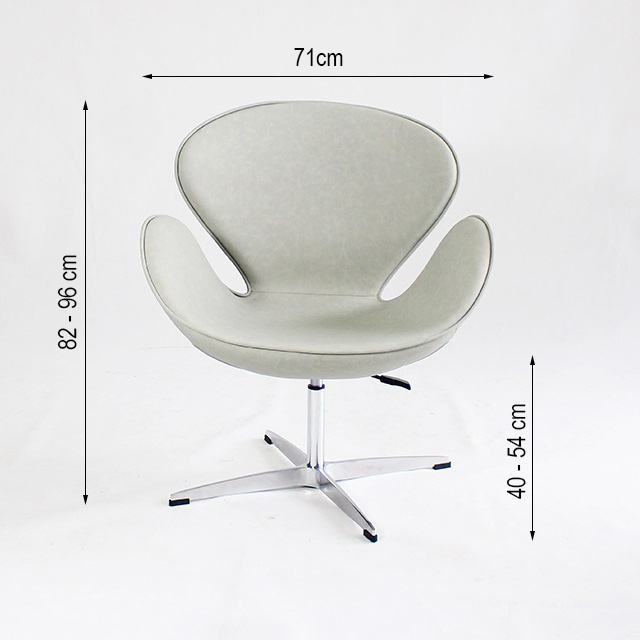 Mẫu ghế thư giãn này có kích thước khá rộng rãi và thoải mái cho người sử dụng. Với chiều ngang tổng thể là 71cm, chiều sâu là 64cm và chiều cao tổng thể cân chỉnh từ 82cm đến 96cm. Mặt ghế tăng giảm từ 40cm đến 54cm. Rất thuận tiện cho bạn cân chỉnh chiều cao ghế phù hợp với chiều cao mặt bàn.