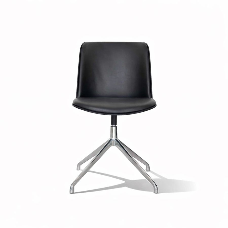 Mẫu ghế làm việc mang tinh thần tối giản – hiện đại, form ghế gọn gàng nhưng vẫn êm ái nhờ phần nệm ngồi và tựa lưng ôm dáng. Khung chân thép tạo cảm giác chắc chắn, thanh thoát và bền bỉ theo thời gian. Tùy chọn bọc vải hoặc da giúp dễ phối với nhiều phong cách nội thất, phù hợp cho phòng làm việc tại nhà, văn phòng và không gian studio.