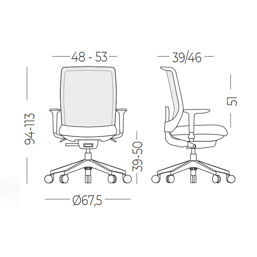 – Vị trí tựa lưng, tay ghế có thể điều chỉnh lên xuống hoặc theo chiều ngang