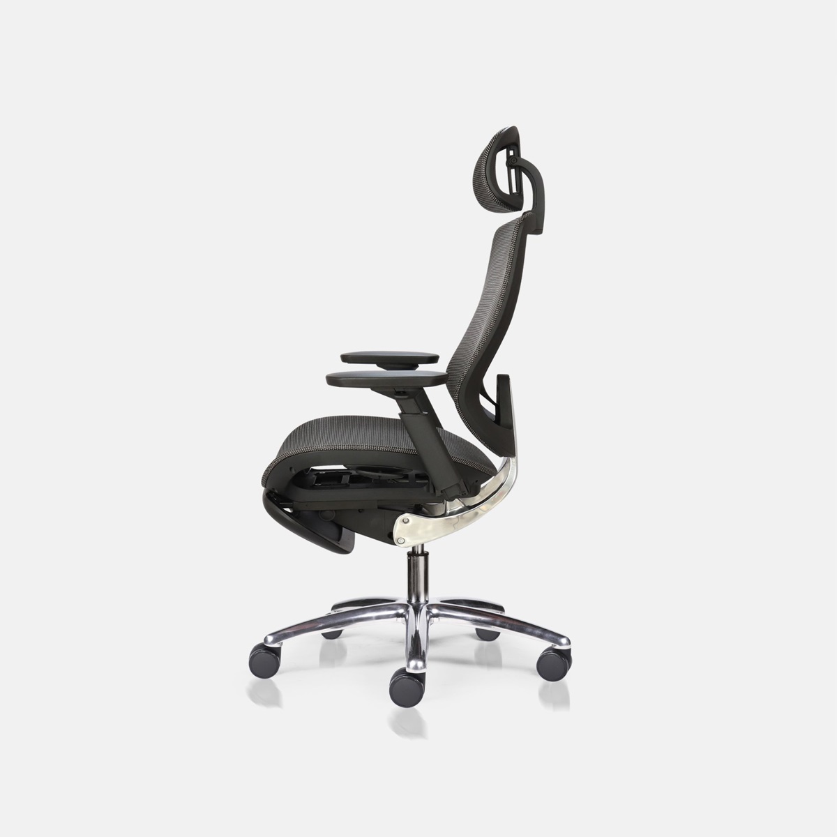 Bộ phận hỗ trợ cột sống có thiết kế ấn tượng được kết nối bằng khung nhôm sang trọng, khả năng tùy chỉnh linh hoạt tập trung vào phần thắt lưng, giúp duy trì tư thế ngồi, giảm áp lực lên cột sống, từ đó hạn chế các vấn đề về bệnh đau lưng văn phòng.