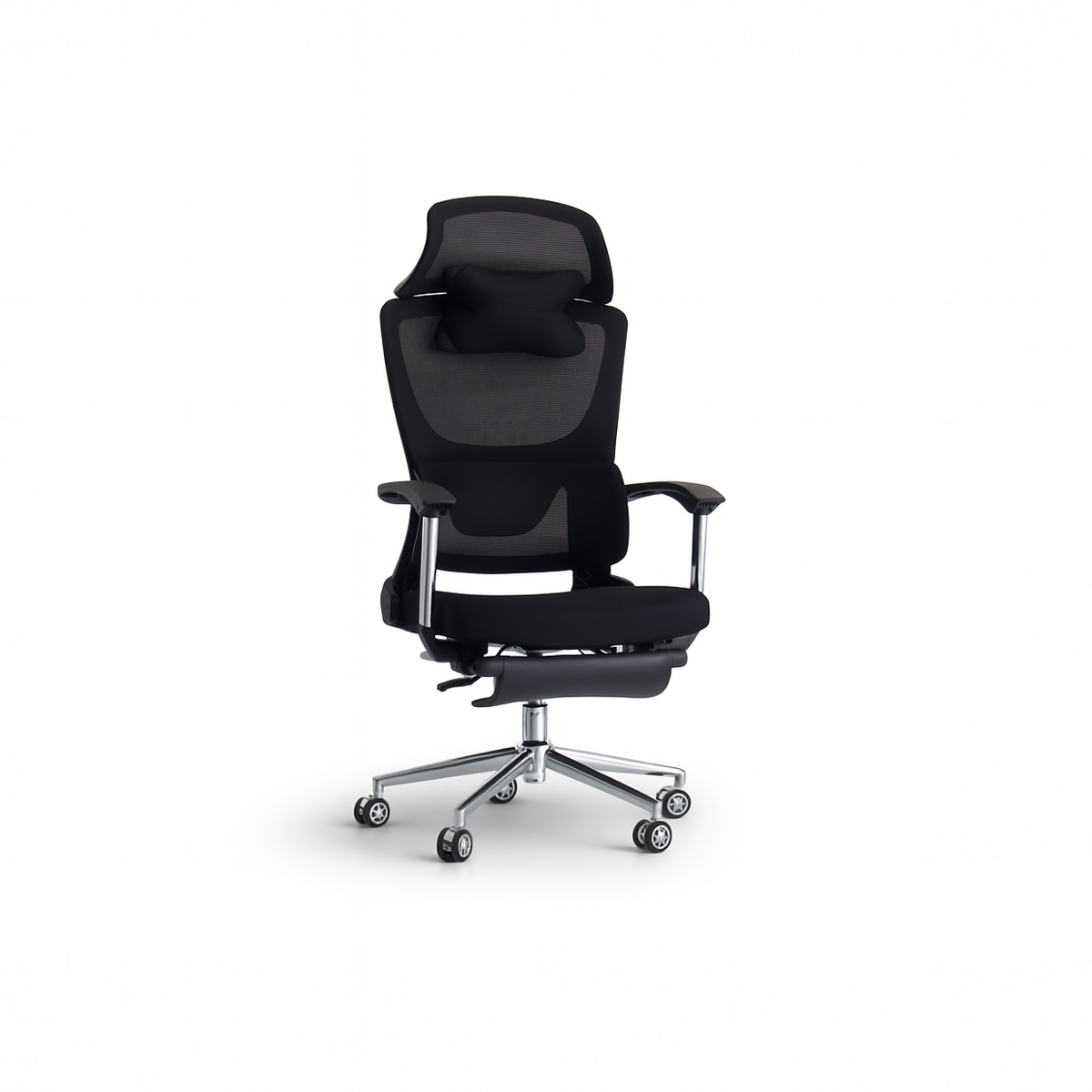 - Lưng tựa vải lưới, có kê đầu. Thiết kế khoa học, tựa lưng cao với phần nệm hông và gối kê vùng cổ tạo cảm giác ngồi cực kỳ thoải mái.