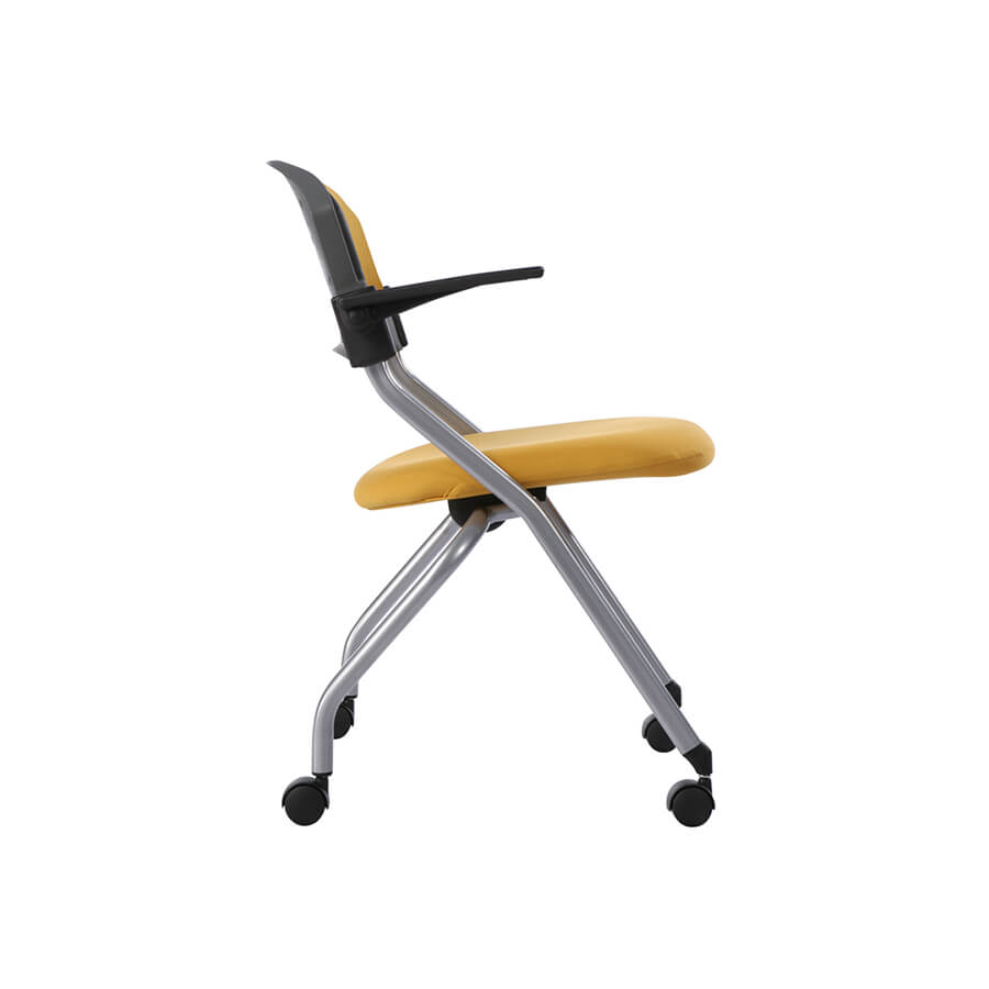 Để tư thế ngồi có một cảm giác chắc chắn thì ghế được bổ sung thêm phần tay nhựa để có khả năng sử dụng ngồi thoải mái hơn và quá trình trao đổi công việc cũng thể hiện được sự cuốn hút trong không gian. Thuận tiện hơn trong quá trình di chuyển trong không gian nội thất văn phòng thì có sự kết hợp của bánh xe chất liệu nhựa đúc chắc chắn.