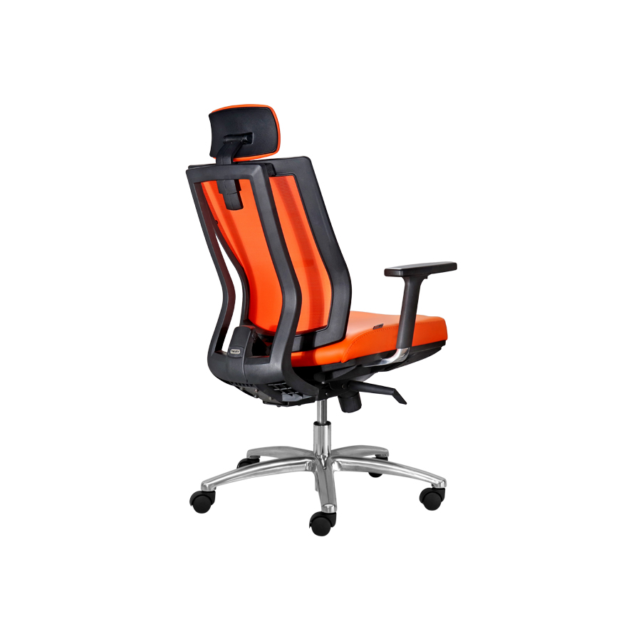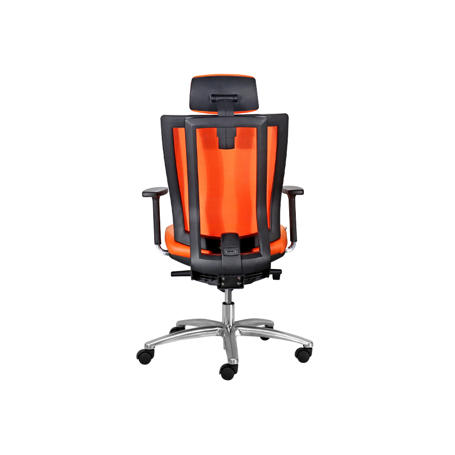 + Mặt nệm bọc vải/da vinyl, khung lưng nhựa bọc lưới sợi tổng hợp