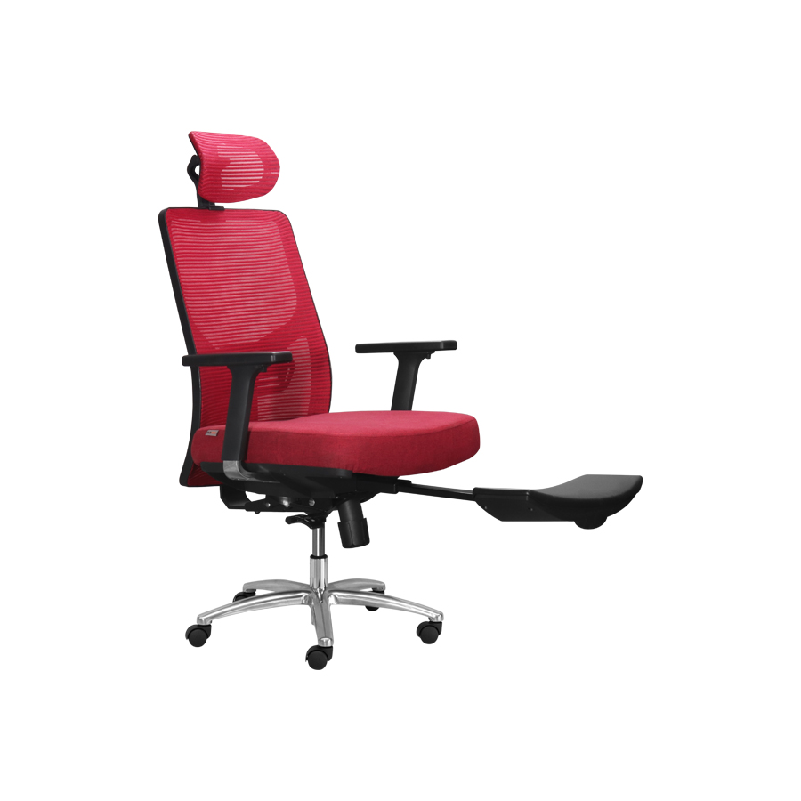 – Chân ghế bằng nhôm chịu lực cao với đường kính vòng chân 700mm rất vững chắc khi ngả lưng, ghế có phần chân phụ có thể kéo ra để gác chân
