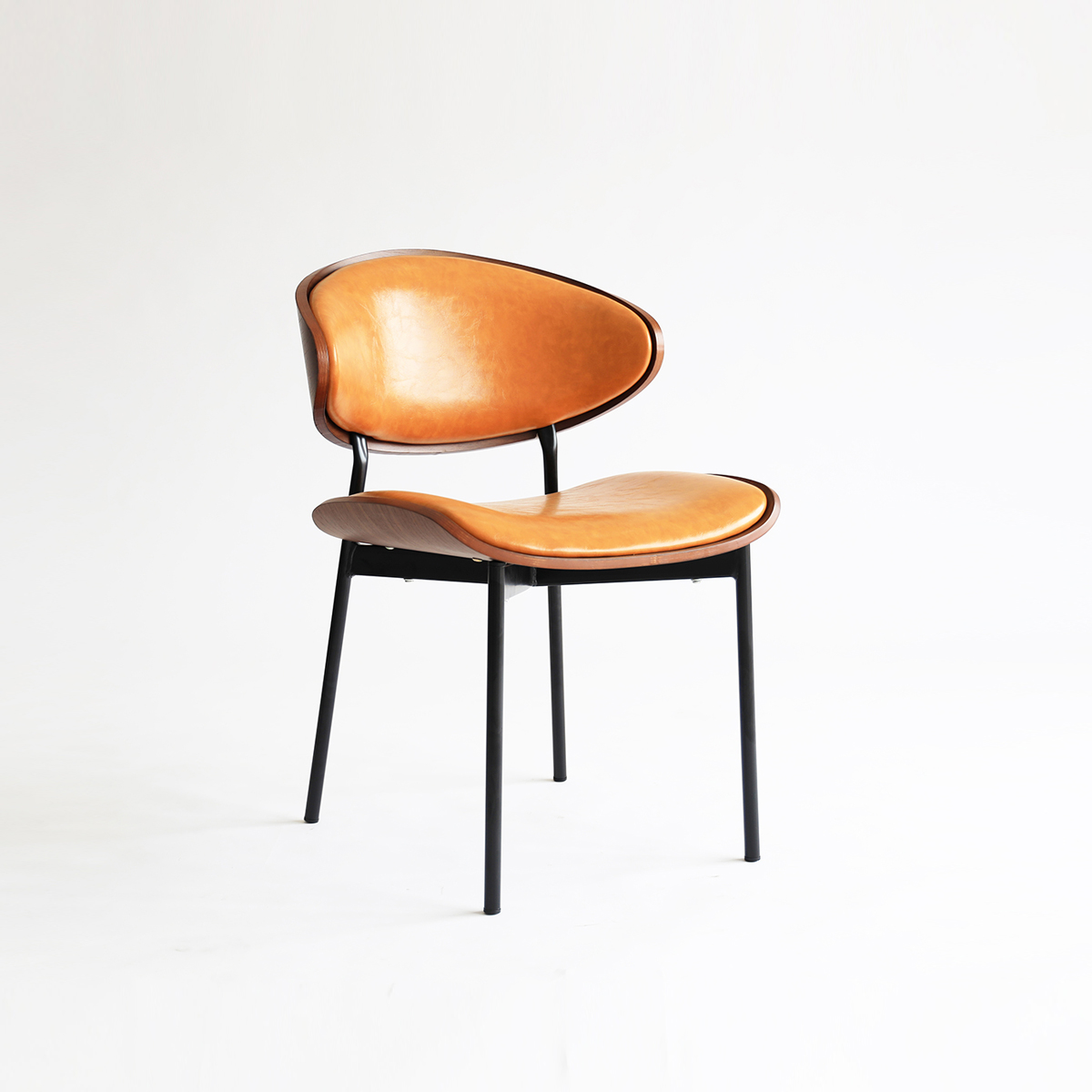 Ghế Falko AK-WC442 – Là một mẫu ghế ăn sang trọng với sự kết hợp giữa chất liệu gỗ plywood uốn cong, cùng khung chân sắt sơn tĩnh điện, mặt và lưng tựa bằng nệm bọc da bò sáp với ba tông màu chủ đạo là đen, kem và cam.