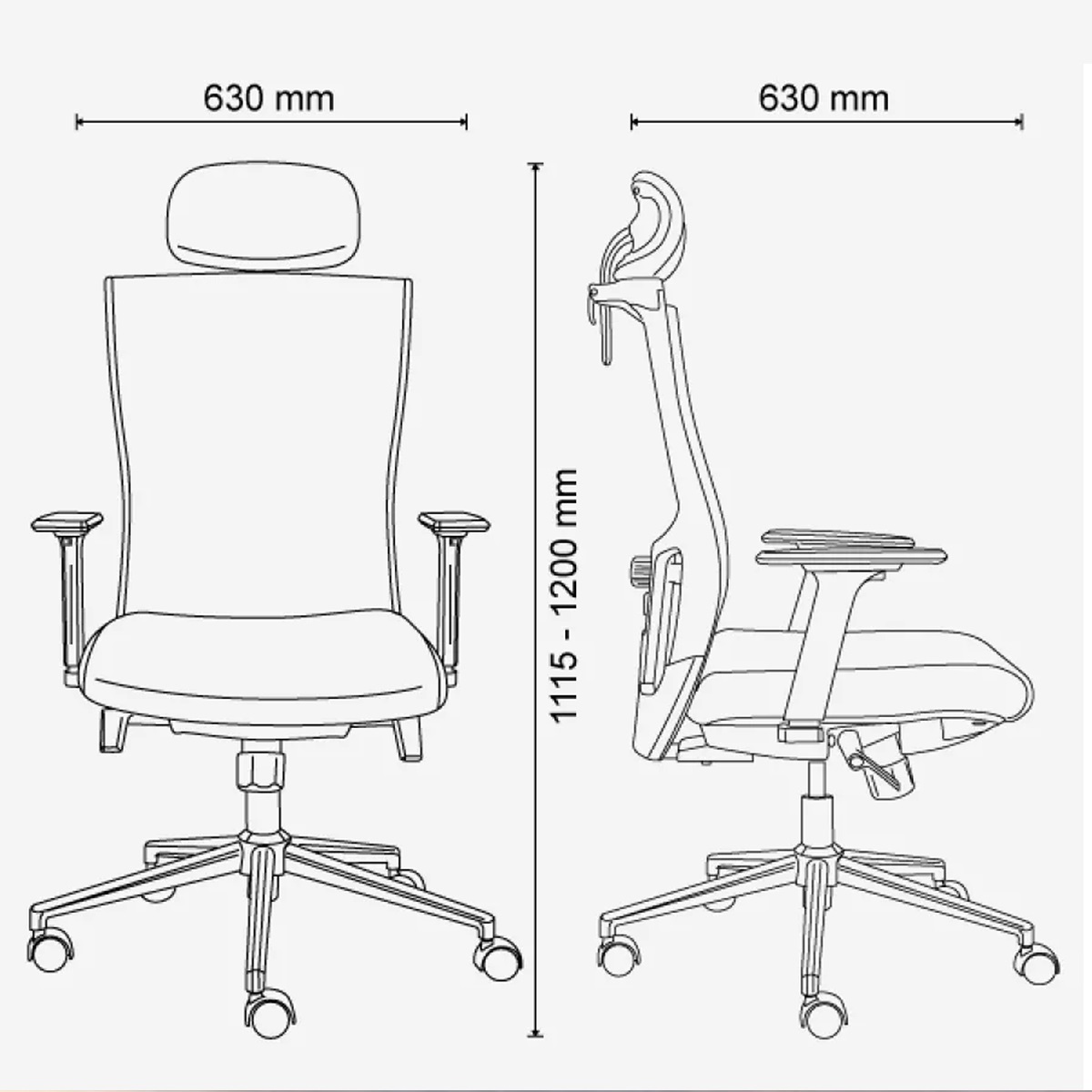 Kích thước ghế phù hơp với đa số người ngồi, với khoang ngồi rộng, gác tay thoải mái có thể điều chỉnh độ cao phù hợp với bàn, với khả năng chịu tải trọng tĩnh lên đến 150kg