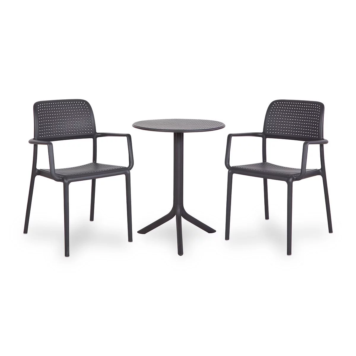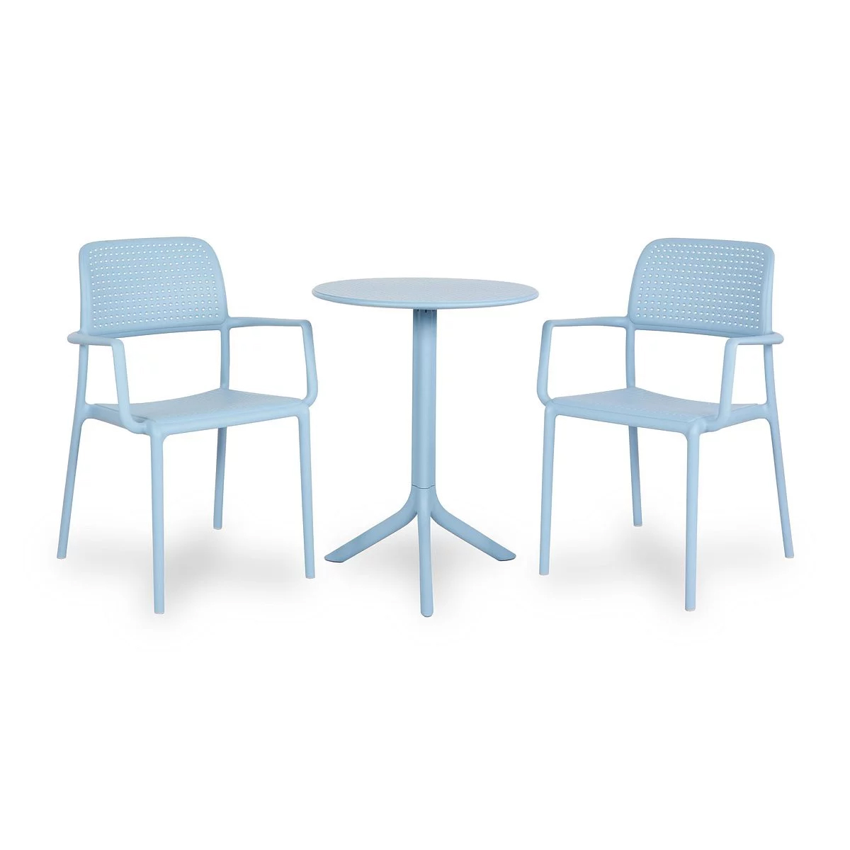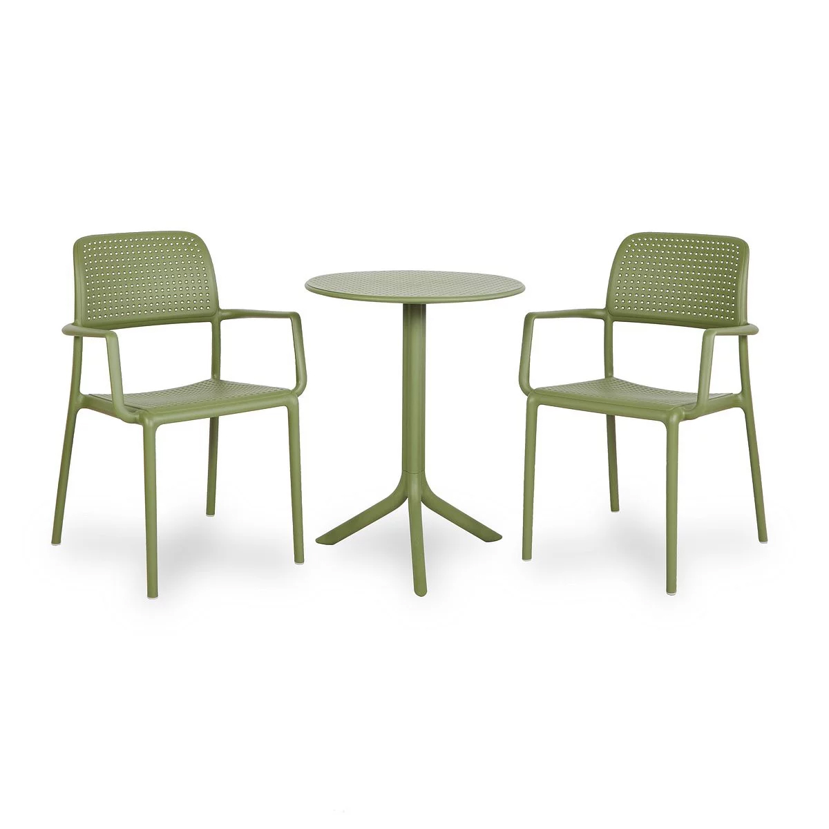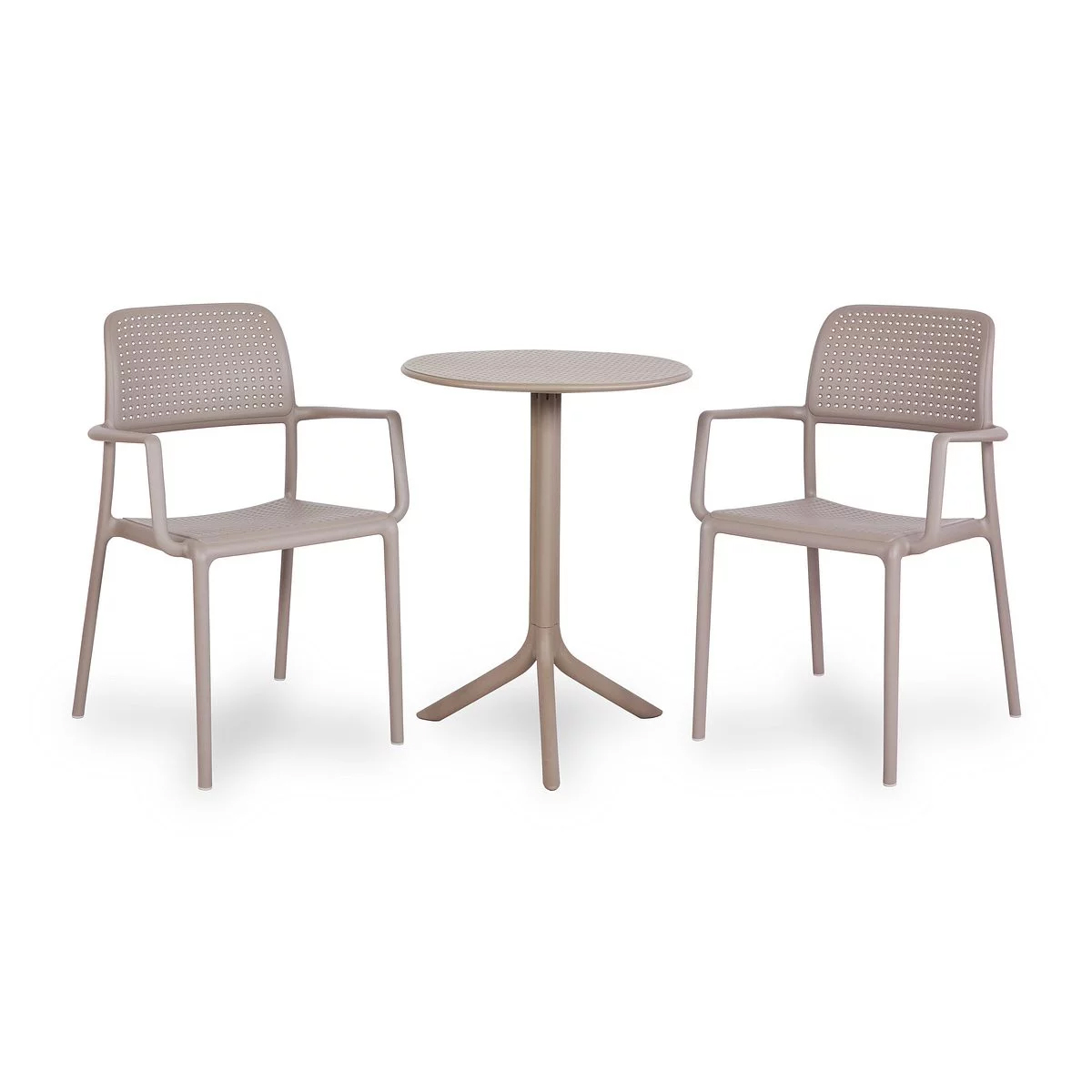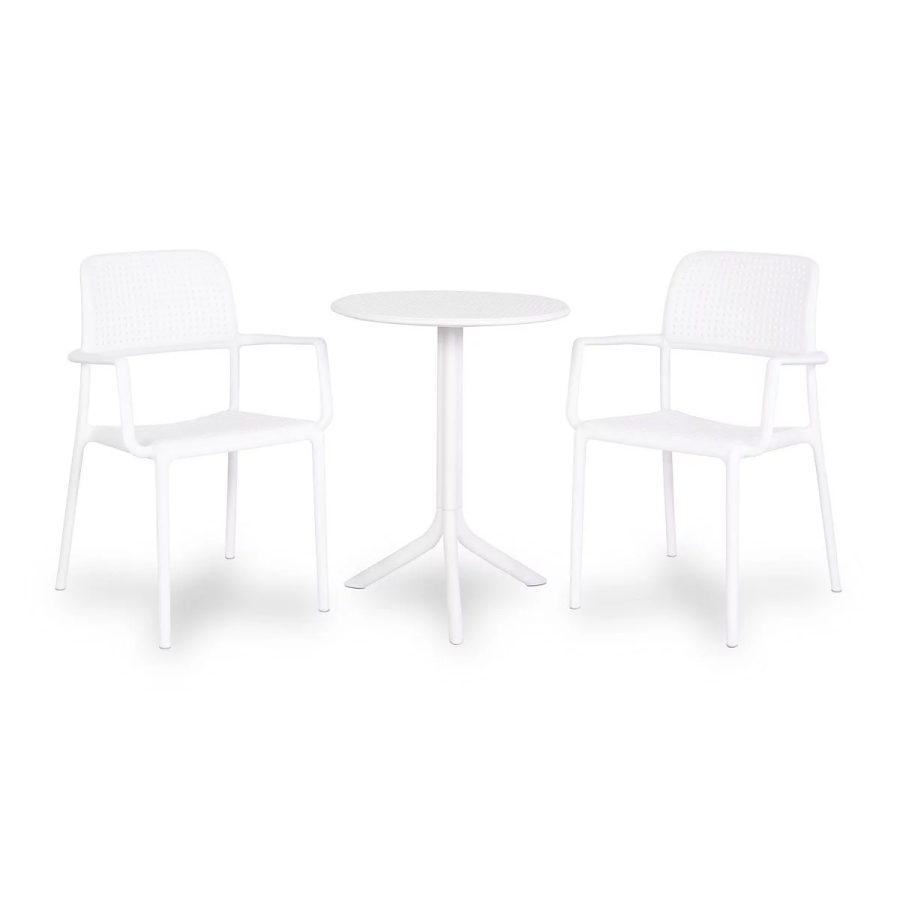 Sự kết hợp giữa mẫu ghế nhựa đúc cao cấp Bora amrchair và bàn nhựa tròn Step, phù hợp cho không gian ban công, sân vườn hay sân thượng, ngoài trời…