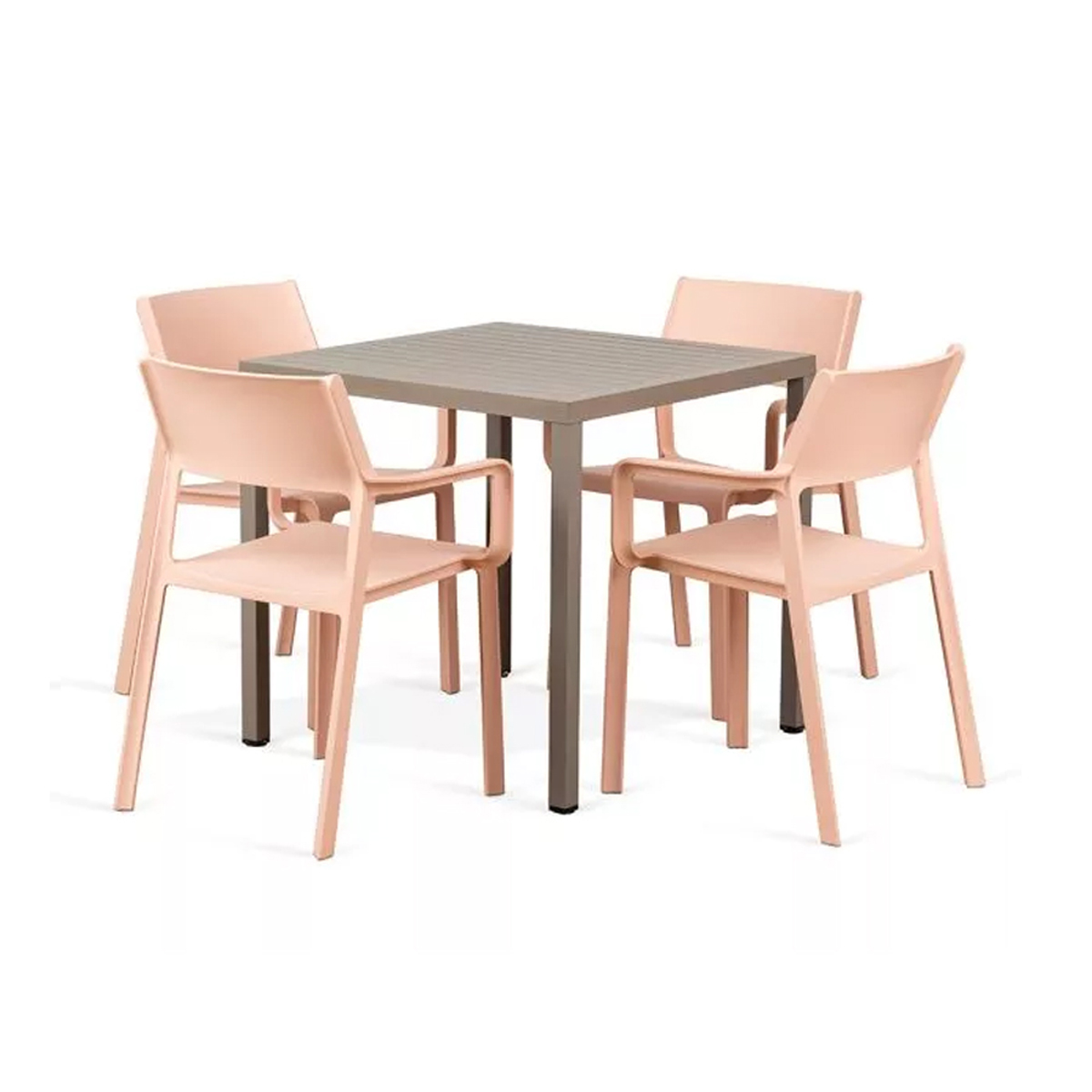 Bộ bàn vuông 4 ghế ngoài trời cao cấp từ sự kết hợp giữa mẫu ghế Trill armchair và bàn vuông ngoài trời Cube 80. Bộ sản phẩm phù hợp cho không gian cafe, nhà hàng, khách sạn hay không gian sân vườn, không gian công cộng..