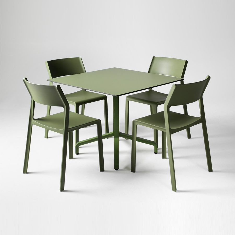 Sự kết hợp giữa mẫu ghế nhựa không tay vịn Trill Bistrot và bàn vuông Frasca , mang đến một giải pháp hoàn hảo cho không gian nội thất hay cả ngoại thất.