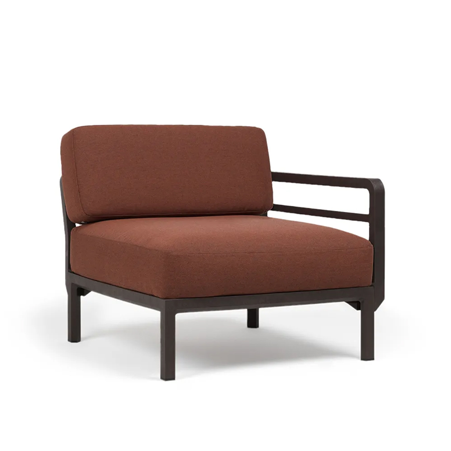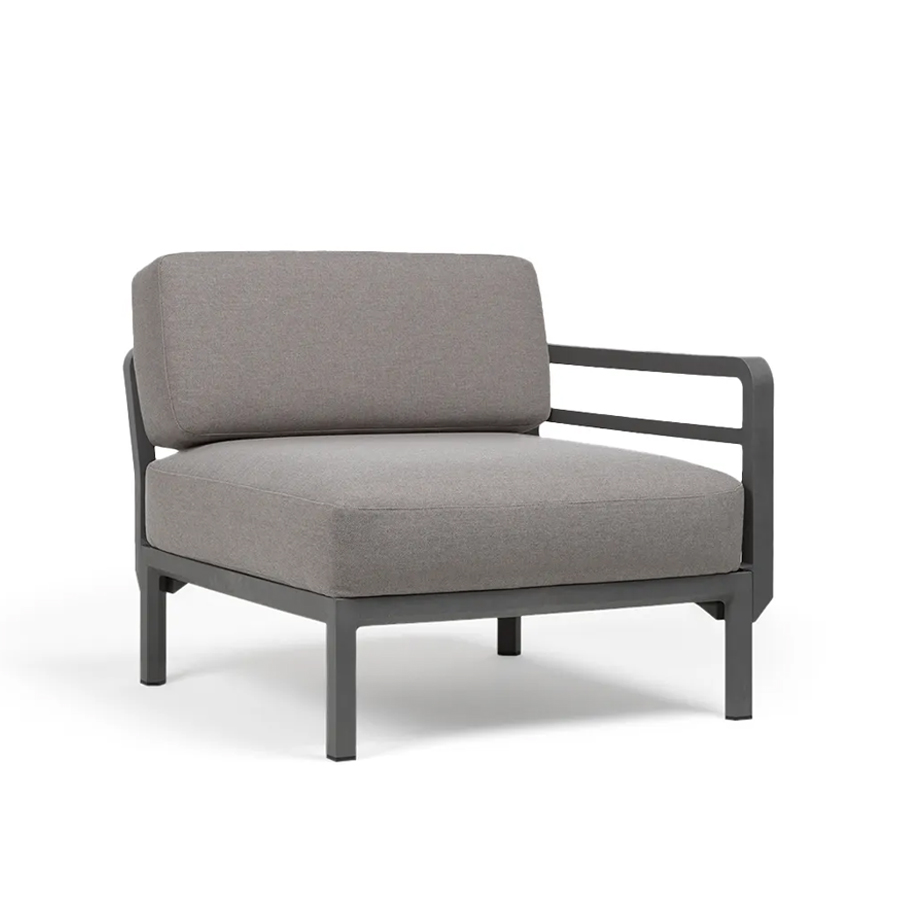 Sofa Maximo Elemento Terminale DX/SX như là một mẫu ghế bành có một bên tay vịn, với khung ghế bằng nhựa sợi thủy tinh có phụ gia chống tia UV, nệm bọc vải chuyên dụng cho không gian ngoài trời.