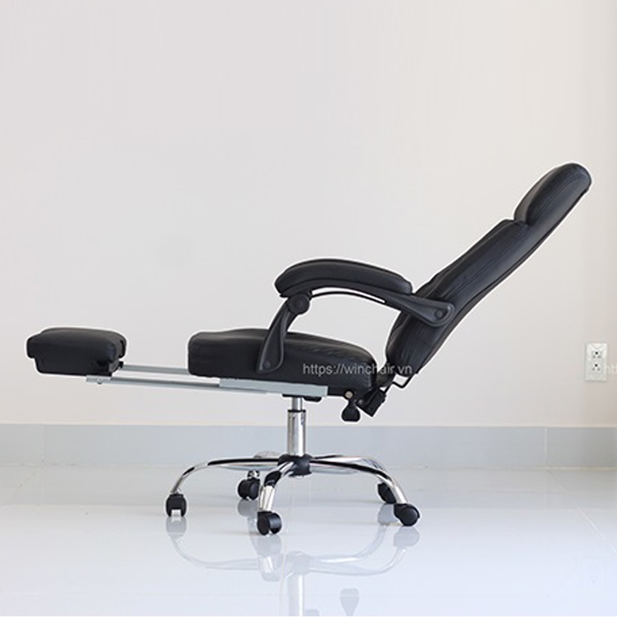 Hệ thống cần gạt tăng giảm chiều cao mặt ghế và cần gạt ngả lưng nằm cùng một bên nên rất thuận tiện khi thao tác. Ghế văn phòng ngả lưng có thiết kế phần gác chân giúp bạn ngả nằm, thư giản thoải mái hơn.